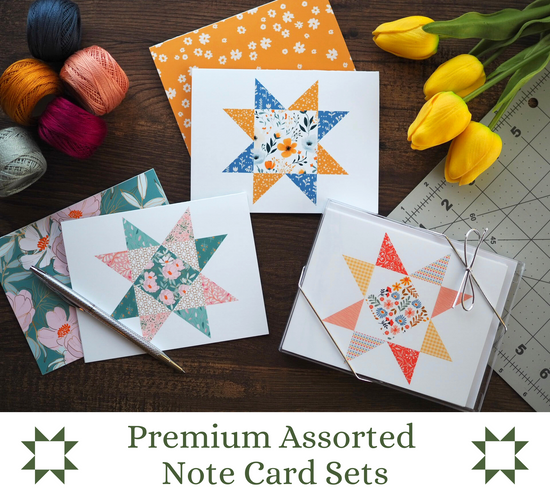 Floral Friendship Quilt Star Assorted Blank Note Cards Set
