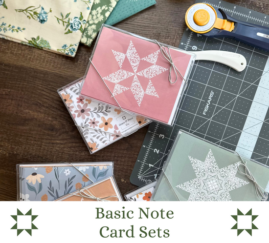 Sage Modern Vintage Quilt Star Boxed Set of 6 Note Cards