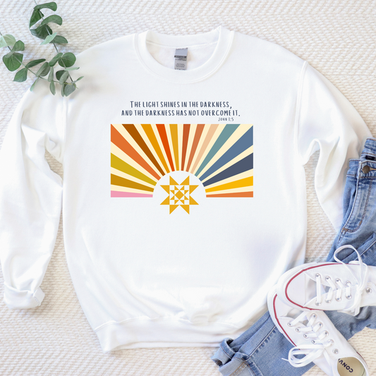 Premium Cotton Heritage Light in the Darkness Bible Verse Quilt Block Crewneck Sweatshirt - Choose Your Color