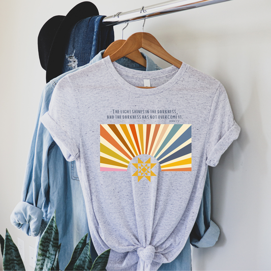 Bella + Canvas Light in the Darkness Bible Verse Quilt Block Light T-Shirt - Choose Your Color
