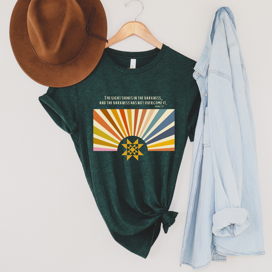 Bella+Canvas Light in the Darkness Bible Verse Quilt Star T-Shirt - Choose Your Color
