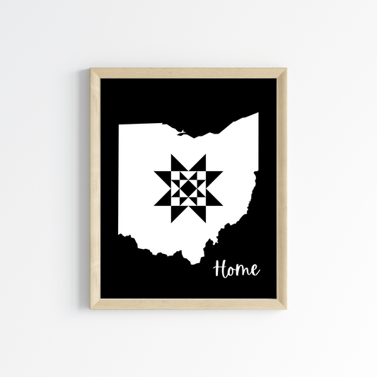Ohio Home Quilt Star 8x10 Wall Art Print - Choose Your Color
