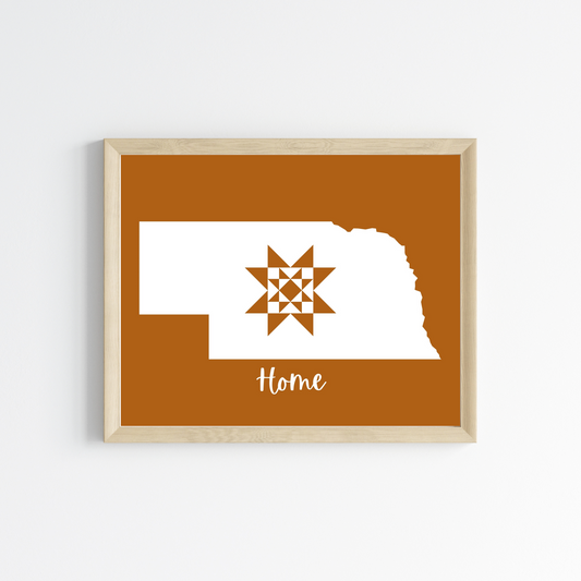 Nebraska Home Quilt Star 8x10 Wall Art Print - Choose Your Color