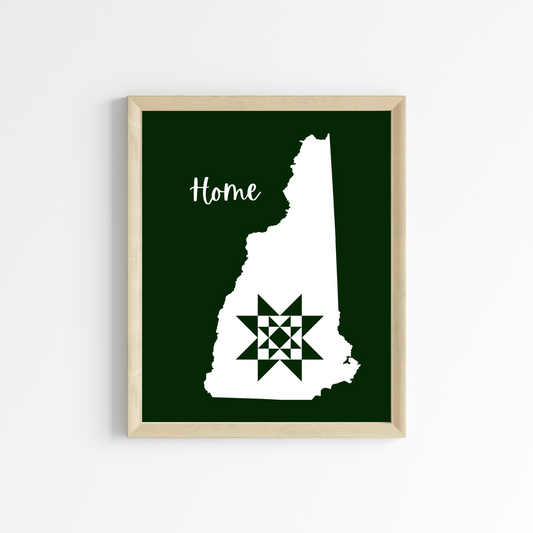 New Hampshire Home Quilt Star 8x10 Wall Art Print - Choose Your Color