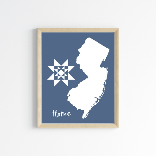 New Jersey Home Quilt Star 8x10 Wall Art Print - Choose Your Color