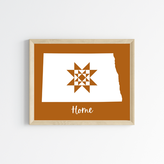 North Dakota Home Quilt Star 8x10 Wall Art Print - Choose Your Color