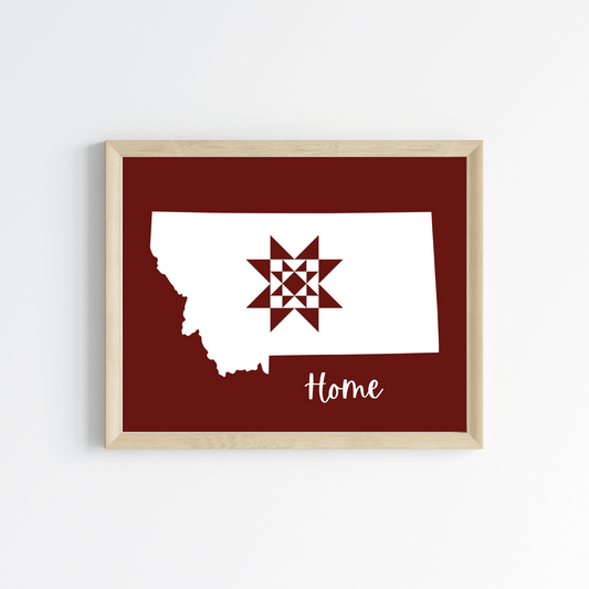 Montana Home Quilt Star 8x10 Wall Art Print - Choose Your Color