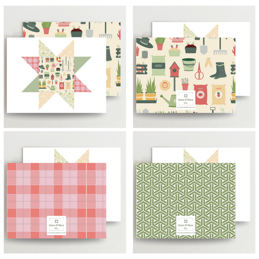 Graceful Garden Quilt Star Assorted Blank Note Cards Set