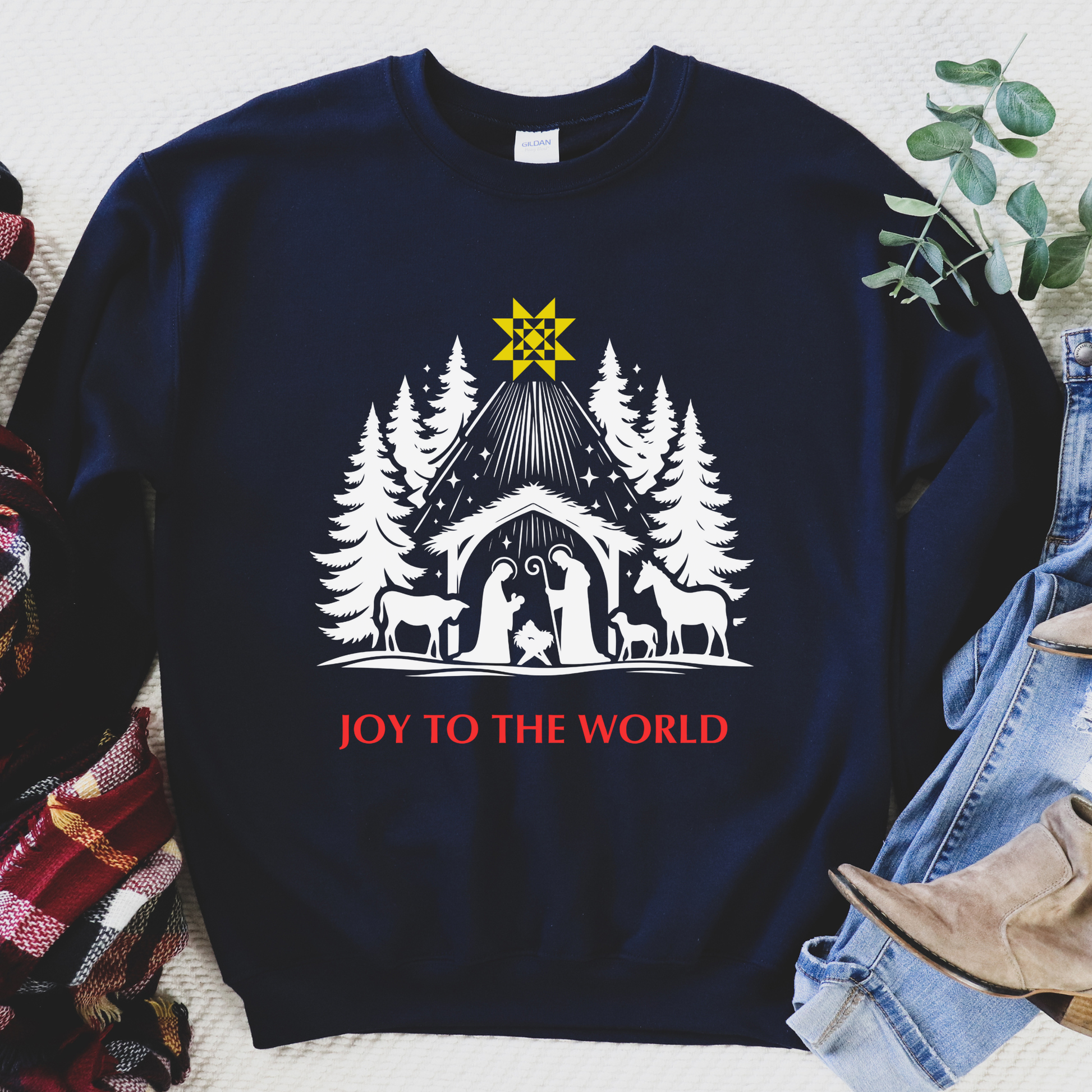 Shine your light and share the true meaning of Christmas this season with this quilt star nativity crewneck sweatshirt, and bring a little more joy to this world!