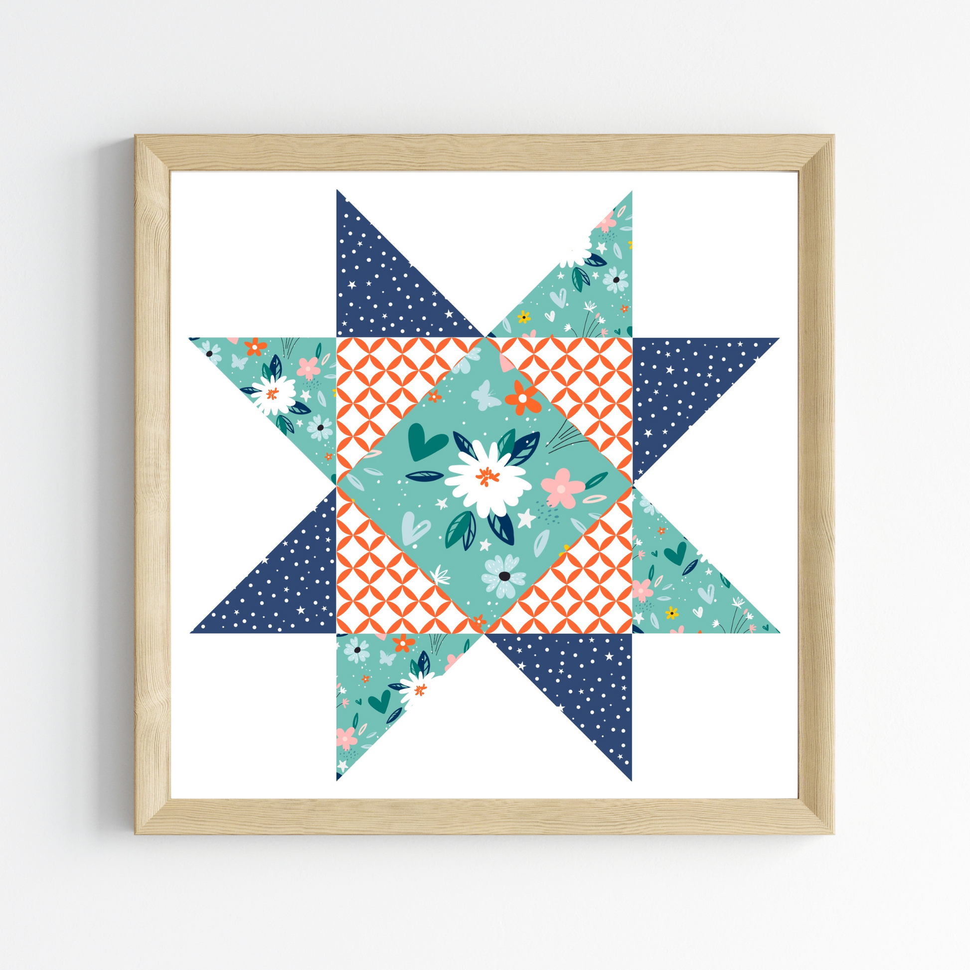 Daisy Stars Patchwork Quilt Star Wall Art Print