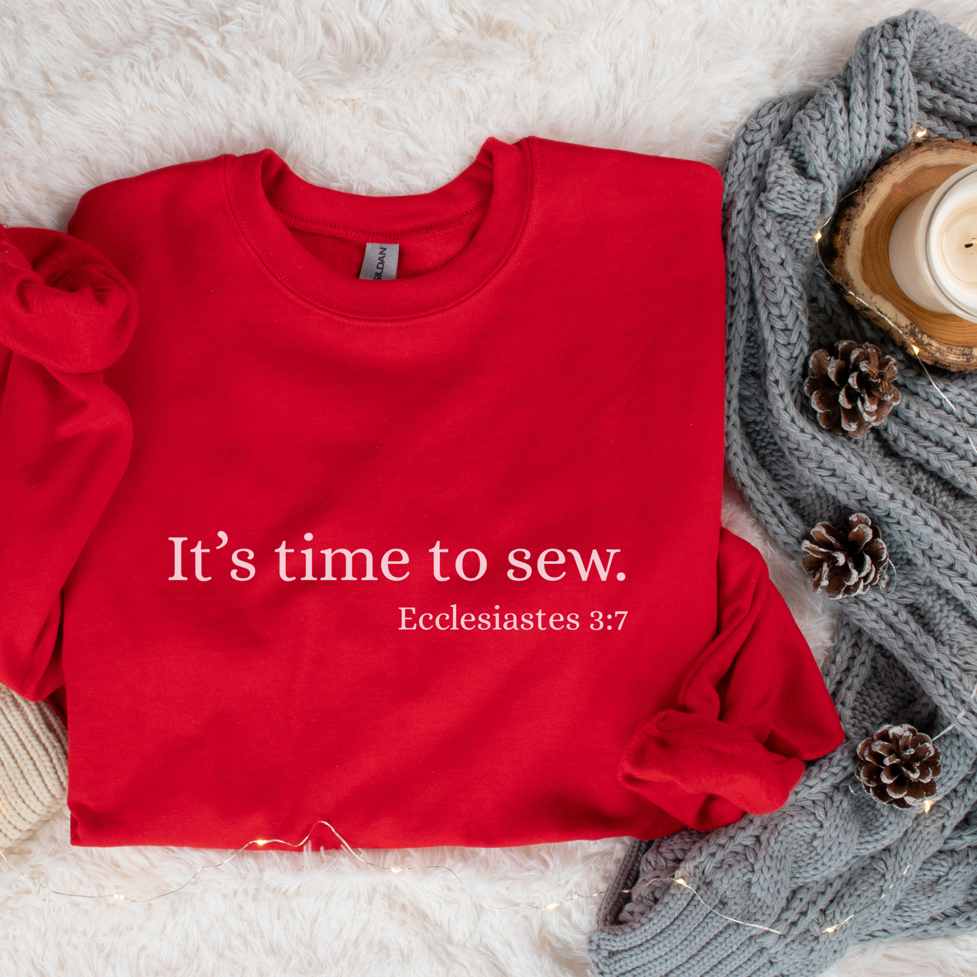 Ecclesiastes teaches us that there is a time and season for everything under heaven, and verse 7 says that includes a time to sew! Show off your faith, your hobby, and your sense of humor all at once with this cozy shirt!